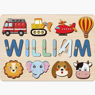 I love giving and receiving personalized gifts! This Personalized Name Puzzle is great for any 2-year-olds! I love the addition puzzles pieces like the machines, animals and much more!
