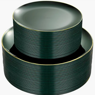 Green & Gold Plate Set (100 Count/50 Dinner Plates: 10.25"/50 Dessert Plates: 7.5")