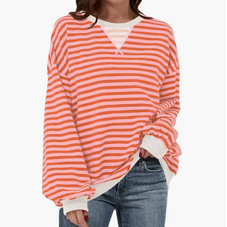 Women's Striped Oversized Long Sleeve (Sizes: Small-XXLarge/Color: Pink,Orange)