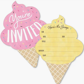 'You're Invited/Here's The Scoop!' Ice Cream Shaped Birthday Invitation (12 Invitations/5" x 7"/Double-Sided/Includes Envelopes)